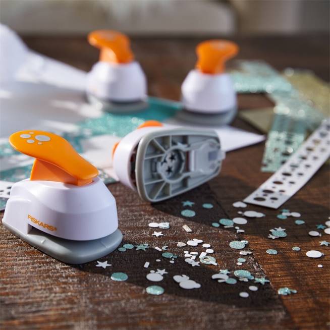 - Fiskars Confetti-making Set includes four small lever punches in traditional and exciting confetti shapes