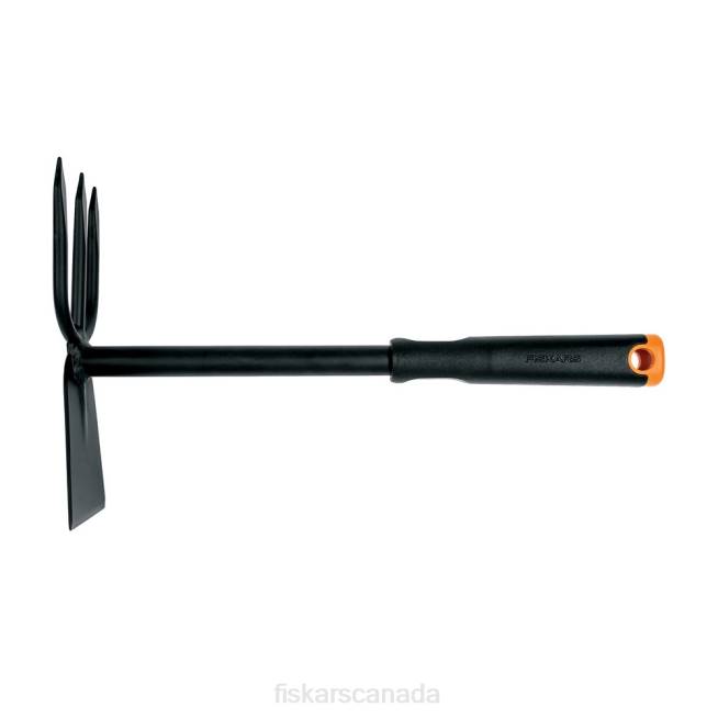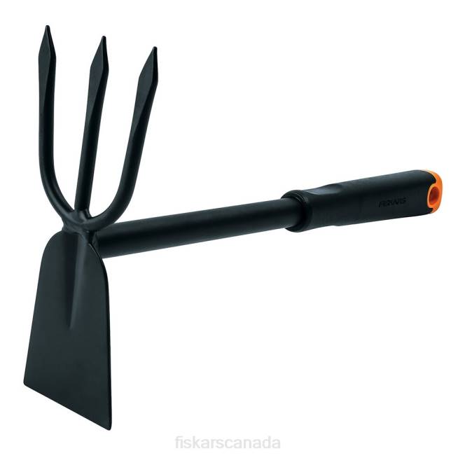 Two essential garden tools have been combined into one, allowing you to loosen soil, uproot plants and dig with a simple flip of the handle. This durable cultivator hoe features a sharpened hoe blade for breaking up hardened clods of soil and pointed cultivator tines for loosening soil. In addition, a lightweight, teardrop-shaped handle helps reduce fatigue and includes a hang hole for convenient storage.