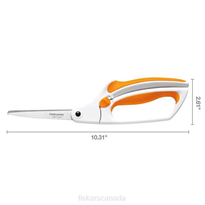 - Fiskars Easy Action Shears feature a spring-action design that opens the blades after each cut, greatly reducing hand strain and fatigue