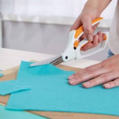 Ideal for mixed media use, Fiskars Easy ActionShears feature a spring-action design that gently opens the blades after each cut to greatly reduce hand strain and fatigue while cutting. High-grade, stainless steel blades have a precision-ground edge that stays sharp longer and provides crisp, clean cuts all the way to the tip on a variety of materials including burlap, cardstock, foam and more. An ergonomically sculped handle with SoftGrip touchpoints offers excellent comfort and control, and a bent handle design keeps materials flat for precise cuts every time. A slide lock keeps blades closed for safe storage.
