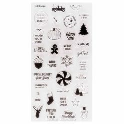 - A 4″ x 8″ Clear Stamp Sheet features a wide variety of fun, yet sophisticated, stamps ideal for fall, holiday and winter parties and celebrations