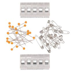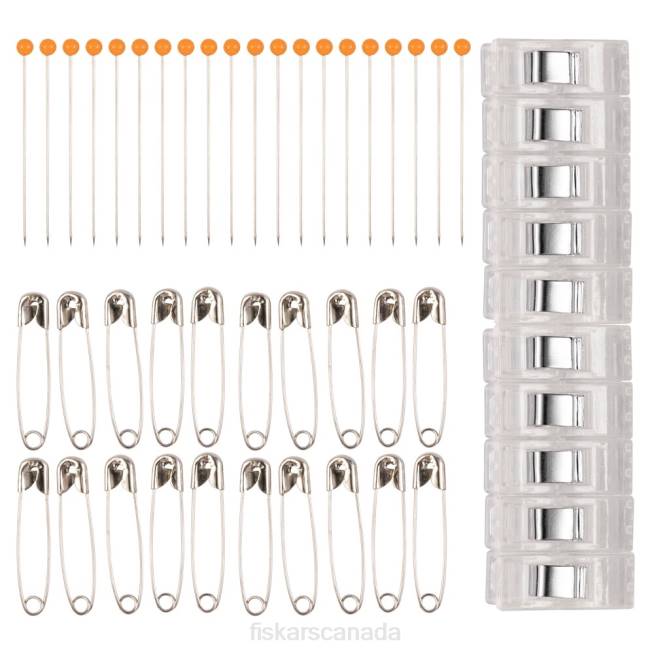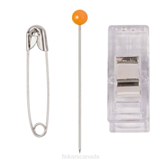 Fiskars Fastening Kit includes fastening essentials for every sewist. Kit includes 20 straight pins with easy-to-spot orange heads, 20 large safety pins with rust-resistant nickel plating and 10 versatile sewing clips that hold layers of fabric flat for easy feeding to the presser foot of your sewing machine.