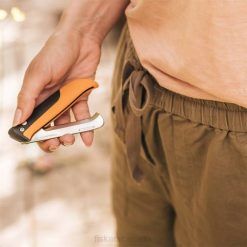 Collect your harvest and protect surrounding plants with Fiskars & Folding Produce Knife, the perfect solution for clean, precise cuts on smaller stalks and stems. Its precision-ground, stainless steel blade has a curved tip, allowing easy access to stalks and stems through dense growth without damaging nearby vegetation. This folding knife’s push-button lock makes it easy to close and keeps it secure when open, while its foldable, ergonomic design offers comfort and compact storage.