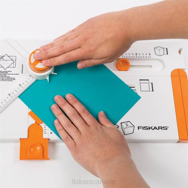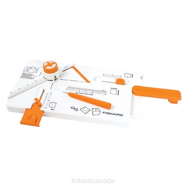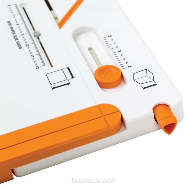 - Tool simplifies box making by indicating paper size and directing score lines, eliminating math and measuring