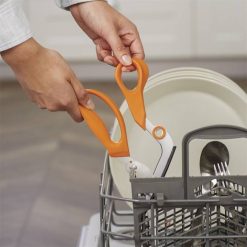 Protect your pans, counters and bakeware, save time and eliminate dishes with this modern kitchen essential. Great for cutting pizza, bakery items, omelets and more, the shears feature a heat-resistant nylon base that allows you to cut just about anywhere without worrying about scratching surfaces. An elevated handle with large, comfortable loops keeps your hand out of the food, while stainless steel blades cut cleanly in one pass. The shears’ base can also be used to help clear surfaces. When dinner’s over, simply separate the blades and toss them in the dishwasher for an easy, thorough cleaning.