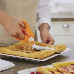 - Ideal for cutting pizza, pastries, quesadillas, omelets and more directly on the pan, baking sheet or plate