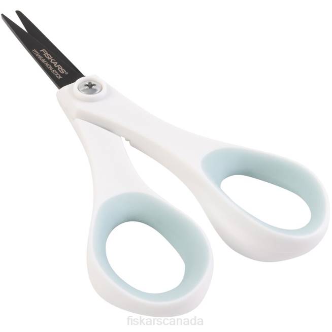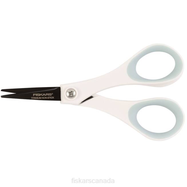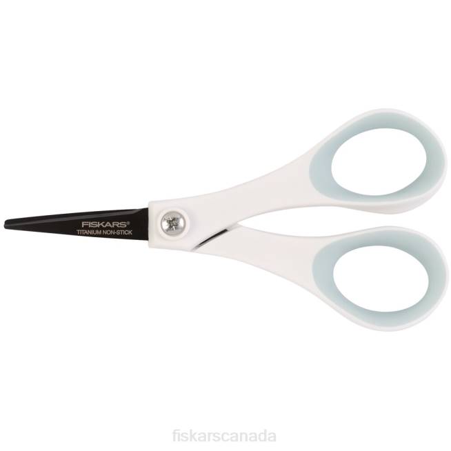 Our small, sharp, non-stick, 5″ Detail Scissors are perfectly sized for clipping coupons, cutting out intricate shapes, quick snips and more. Titanium-enhanced, stainless steel blades stay sharp through heavy use and feature a non-stick blade coating, allowing them to cut cleanly through materials with sticky adhesives. A lightweight, double-loop handle provides excellent control when cutting tight patterns, while comfortable Softgrip touchpoints help reduce hand fatigue.