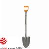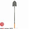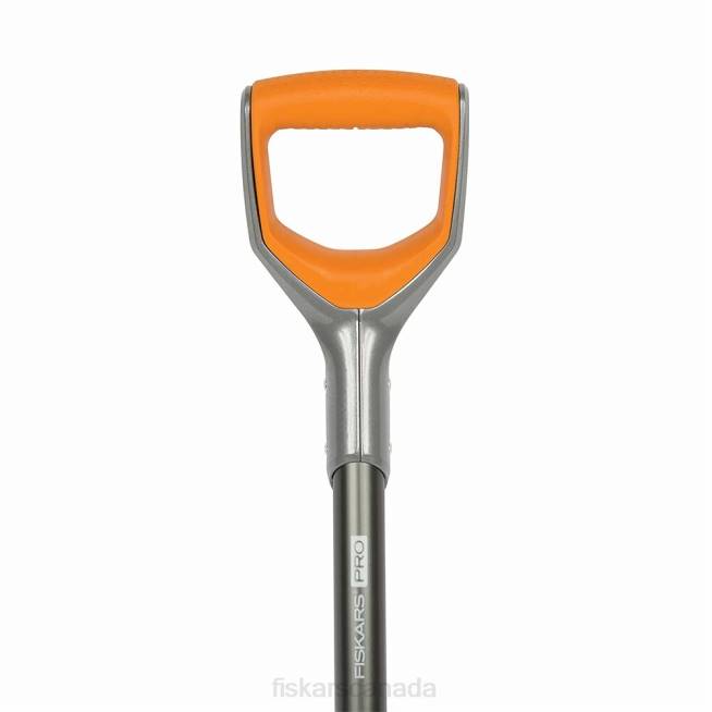 Winner of the Red Dot Best of the Best 2019 award.The Fiskars Pro D-handle Transfer Shovel features ultimate durability, making it ideal for moving mulch, wood chips, fertilizer and more. An extruded aluminum handle ensures superior strength, while double-bolted connections guarantee the tool will not come apart. The heavy-gauge spade stands up to any task, while a large step provides more stable footing. A teardrop-shaped shaft better fits the contours of your hand and is optimally angled for transferring heavy loads. Reinforced with metal for added strength, an angled, high-visibility handle also features Softgrip touchpoints to reduce repetitive fatigue. Additionally, the D-handle design keeps your wrist in a neutral position to reduce strain, while its shorter length allows you to work in tight spaces. The simple, heavy-duty construction of this shovel makes it a reliable choice for daily, quality performance under all conditions.