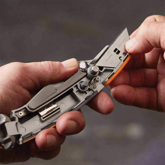 Keep your knife secure easily and simply with a Fiskars Pro Fixed Utility Knife, featuring a unique folding blade guard. This knife holds the blade securely and firmly so there’s no wobble while in use. And, when you need to secure it you can do so worry free with the press of a button that deploys the guard. The knife hinges open while a magnet holds the blade in place for easy blade change. There’s no loose parts to disassemble so you can switch simply and quickly and there’s onboard storage capacity for five fresh blades. A reinforced metal end provides reliable resistance against pounding and drops. Includes one CarbonMax(TM) utility blade that lasts 24X longer than standard utility blades.