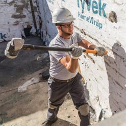 Great for hard-hitting, heavy-duty demolition work, this burly, 16 lb sledge hammer lets you take on intense demolition tasks, while helping reduce muscle fatigue and joint pain with a patented, industry-leading IsoCore(TM) Shock Control System that reduces shock and vibration by 2X. A dual-layer handle captures any lingering vibration. Premium steel is forged into a unique head featuring a wedged demolition face to maximize destructive force and an extra-large driving face for improved strike accuracy. The IsoCore(TM) Shock Control System absorbs strike shock and vibration, reducing the punishment your body takes. An inseparable riveted head will not slide down or snap off, even when swinging with maximum force. A performance handle design fits hands securely and comfortably, and strategic texturing helps improve grip while reducing blisters. This design has been tested to exceed U.S. standards for striking tool durability to withstand the toughest work environments.