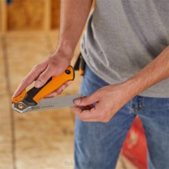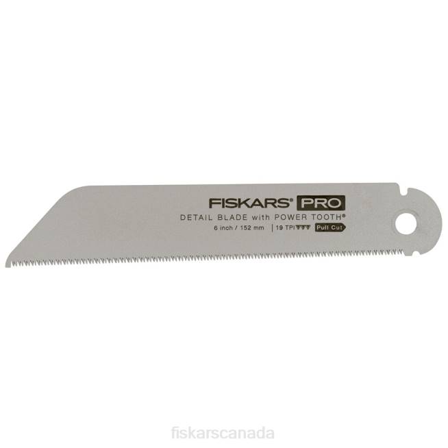 The bind-resistant Fiskars Pro POWER TOOTH Pull Saw Blade is ideal for precise finishing work on softer woods. The 19 TPI blade offers excellent accuracy and control for detailed cuts, and its thin kerf allows flexibility for quick, clean flush cuts. Its induction-hardened teeth stay sharp longer and a low-friction coating prolongs the life of the blade and resists rust. This blade fits the Fiskars Pro POWER TOOTH Folding Pull Saw, which features an intuitive hex bolt blade replacement mechanism.