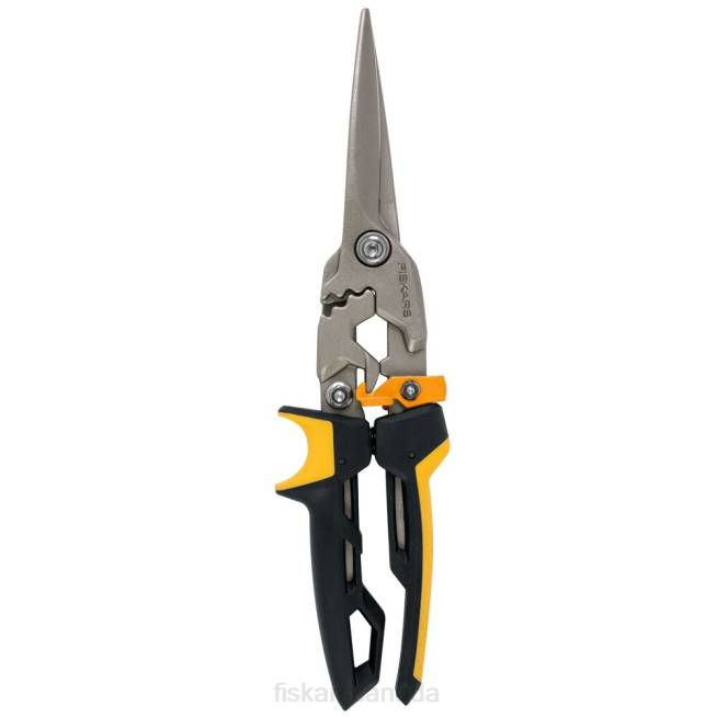 - Fiskars & Pro PowerGear & Aviation Snips (Long Straight Cut) features advanced mechanics and ergonomics, as well as a longer cut length