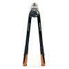 Experience advanced mechanics and ergonomics with a new generation of bolt cutters that deliver more strength, comfort and control. PowerGear technology gives you over 30% more power, especially during the toughest part of the cut. An eccentric bolt can be adjusted for optimal jaw alignment, while forged, heat-treated blades stay sharp through heavy use. Ergonomic handles with Softgrip help to improve comfort and control, while rugged steel construction guarantees long-lasting performance. This design can cut soft materials up to 5/16″ and hard materials up to 3/16″.