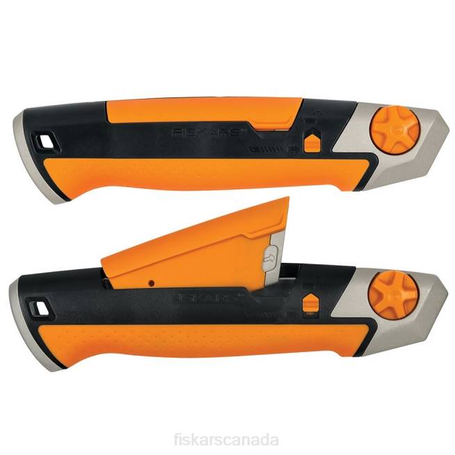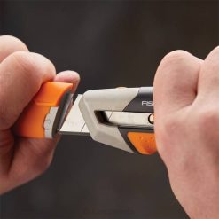 - The Fiskars Pro Snap-off Utility Knife offers convenient, front-loading blade change with no loose parts