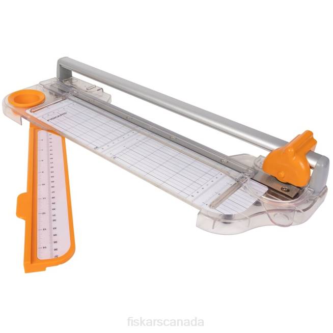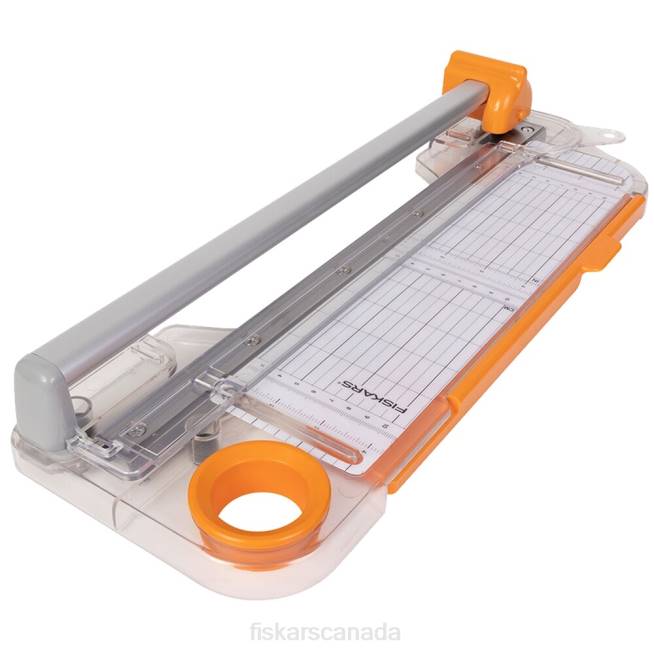 - The Fiskars Rotary Bypass Trimmer has an aluminum cut rail that won’t flex or wobble, for straight cuts through vinyl, leather, chipboard and more