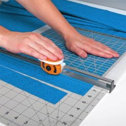 Great for beginners, the unique design of this tool makes perfect cuts through fabric a breeze — since you’re not managing two tools separately, you don’t have to struggle with a misaligned ruler or worry about holding the rotary cutter straight. It includes a 45 mm spring-action rotary blade that makes clean cuts through multiple layers of fabric and an ergonomic blade carriage that makes cutting smooth and easy. The ruler features a bold 6″ x 24″ grid that is printed on both sides for right- or left-handed use, plus highlighted numbers for excellent visibility on light or dark fabric. The unique rail design prevents lint build up as you work, the no-touch magnetic blade change system makes blade change safe and easy while storing used blades, and a carrying handle offers easy, convenient transportation.