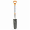 The Fiskars steel D-handle transplanting spade features a durable design that provides excellent grip when you are digging small, deep holes for planting or digging up bulbs. The welded steel construction is far more durable than wood and won’t flex like fiberglass. The extra-large D-handle design offers two-handed grip, and a teardrop-shaped shaft profile provides exceptional comfort and control. The sharpened blade cuts into dense soil easily, and an extra-large foot platform helps maximize force to break up hardened soil clods.