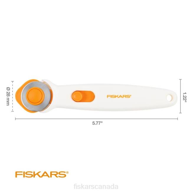 Ideal for cutting intricate curves, patterns and applique from fabric, Fiskars Stick Rotary Cutter (28 mm) features a high-grade, precision-ground, 28 mm premium steel blade for long-lasting sharpness. A sliding button extends the blade guard for secure storage and protection when not in use. Blade changes are faster and easier thanks to fewer loose parts. This rotary cutter’s symmetrical, ambidextrous design allows for controlled, easy freehand cutting with either the left or and right hand.