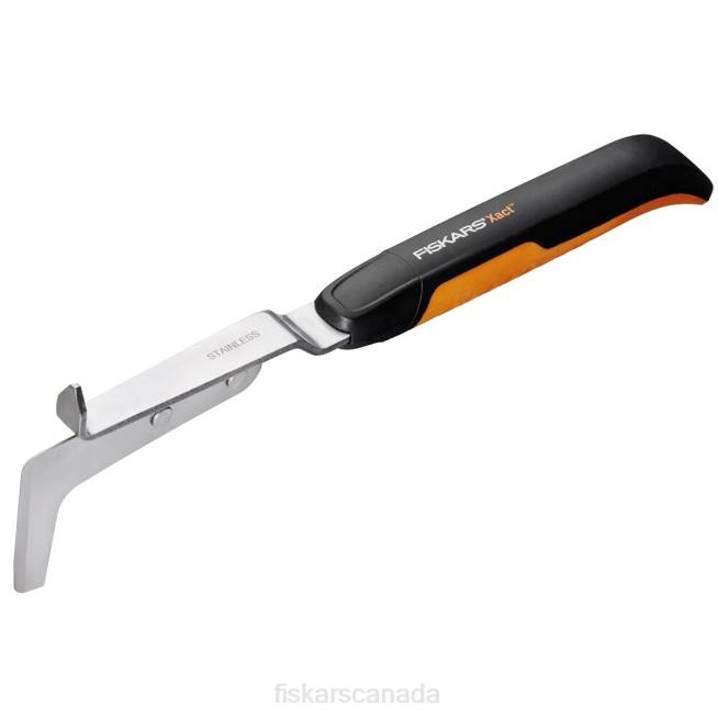 - Durable, stainless steel blade resists rust and includes a hook and sharpened edge for cutting out weeds
