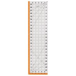 - 6″ x 24″ clear Acrylic Ruler lets you see where you’re cutting and includes highlighted seam allowances for strip cutting and a grid for simplified shape cutting