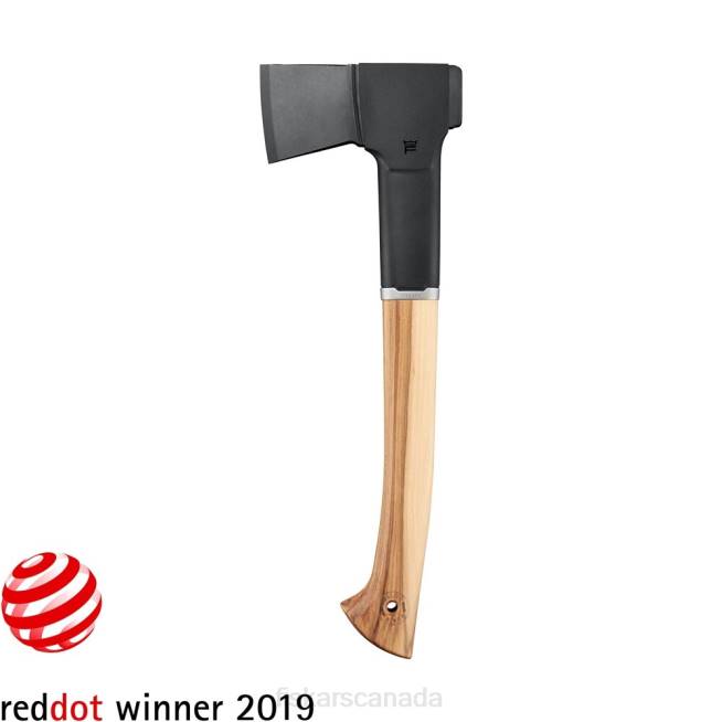 With a compact size allowing for comfortable one-handed use, this axe is crafted of the highest quality materials. It features a first-of-its-kind tumble-varnished hickory wood handle with FiberComp overstrike protection and an over-molded axe head for the strongest, safest head & shaft connection. Its double-hardened, precision-ground carbon steel blade stays sharper longer, and a low-friction blade coating keeps the head from getting stuck. Like every Fiskars axe, this kindling axe employs perfected weight distribution, advanced blade geometry, an ultra-sharp edge and a virtually unbreakable design. A flared handle offers improved grip and control, and its recycled leather sheath provides safe storage.