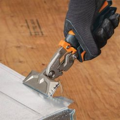 Engineered for maximum power, precision and comfort, Fiskars & Pro PowerGear & Seamer uses innovative PowerGear & technology to multiply your leverage for 40% more power with less strain and fatigue. Its advanced gear mechanics also prevents overextension without sacrificing performance by providing an optimized handle span that naturally fits your grip. The ergonomic, spring-assisted Easy Action handle opens automatically, further reducing hand strain, and SoftGrip touchpoints provide a non-slip, comfortable hold for superior all-day control. Made of forged, heat-treated steel with an extended tang for durability and squeeze-pinned grips that stay put, this heavy-duty seamer is built to withstand the toughest conditions. It can be locked from above or the side for one-handed, ambidextrous use. Quarter-inch jaw markings enable quick precision and a jaw width of 3 1/8″ and depth of 1 1/4″ provide versatile use on up to 18-gauge sheet metal, duct work, gutters and more.