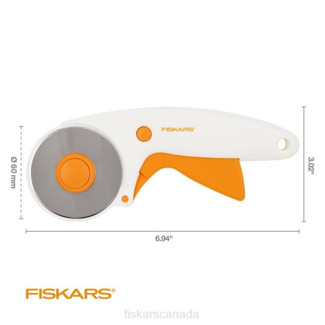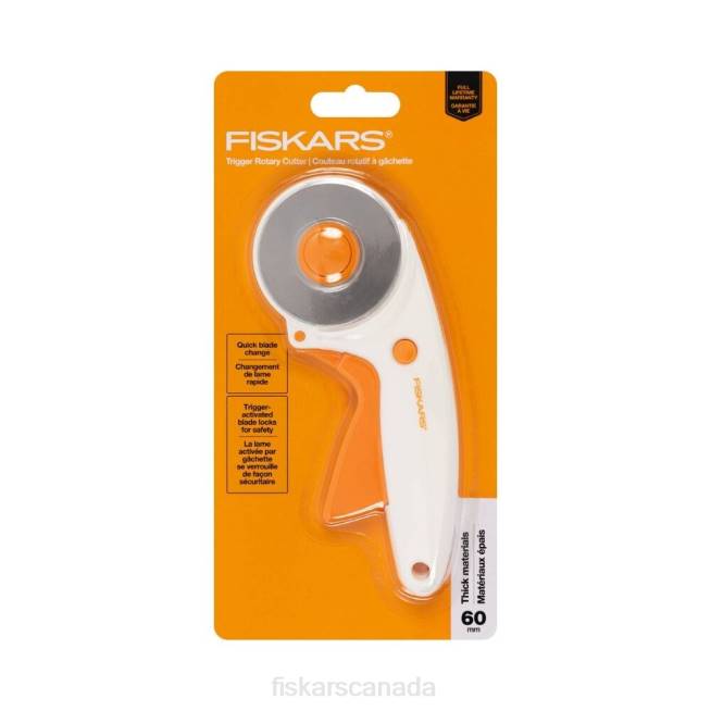 - Fiskars Trigger Rotary Cutter 60 mm is ideal for smooth cuts through batting and thick fabrics, including canvas, denim and leather